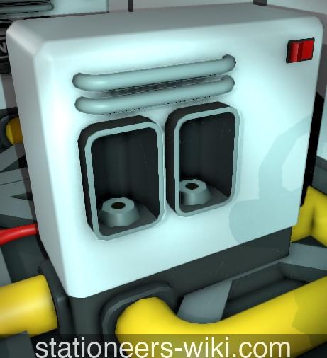 Filtration Unit is a powered machine, that is used to separate gases from one pipe network into another using filters. Identical to most other machines deployable from the Kit (Atmospherics), Filtration unit occupies a 2x1 space on the small building grid supported by a frame. Back face of the unit provide floor-level power and logic cable ports, while the front side holds the control panel and two filter sockets. Front and either side also feature dedicated one-way pipe slots for managing gas inputs and ouputs.