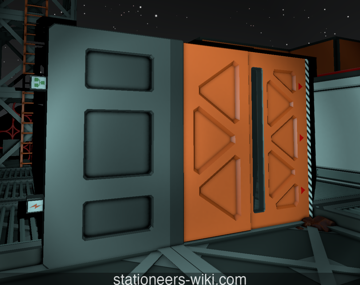 The gate has one power input and one data input. Like the Airlock, it has no integrated buttons to open and close the door and must be controlled via a logic signal, or forced open with a Crowbar.