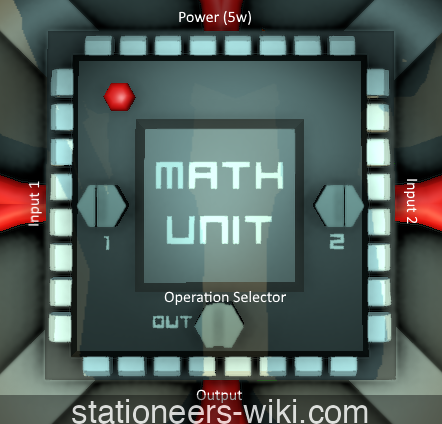 Bottom Center: Operation Selector. Click with screwdriver to select what operation to run on the 2 inputs.