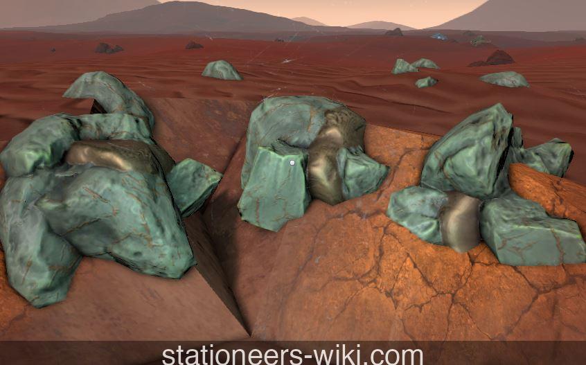 Ore (Copper) is a common ore that can be mined throughout the surface and underground of a planet or an asteroid using a Mining Drill or Pickaxe. It can also be obtained by processing dirty ore from a Deep Miner using a Centrifuge or Combustion Centrifuge.