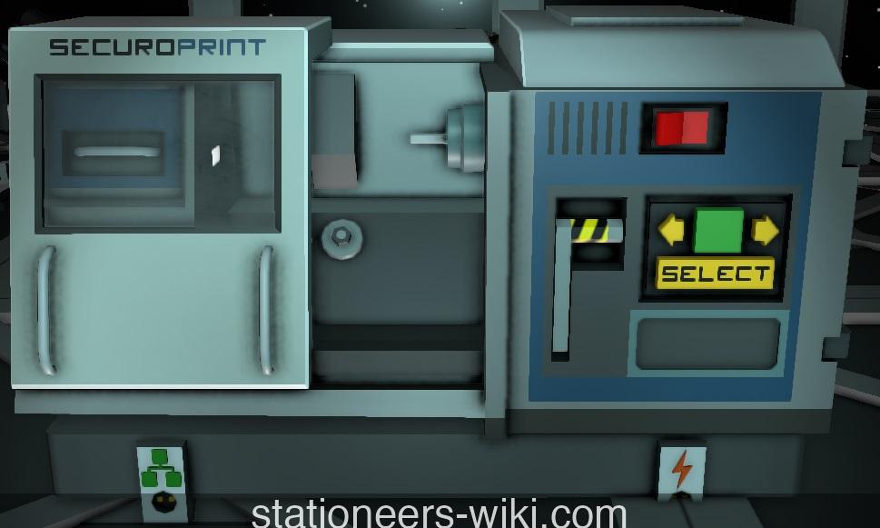 "Any Stationeer concerned about security needs the Harkwell-designed Vigilant-E security printer. Use the Vigilant-E to create a Access Controller, in order to restrict access to different parts of your base via keycards like the Access Card (Blue). The printer also makes a variety of weapons and ammunitions to defend your base against any hostile, aggressive or just slightly rude entites you encounter as you explore the Solar System." — Stationpedia